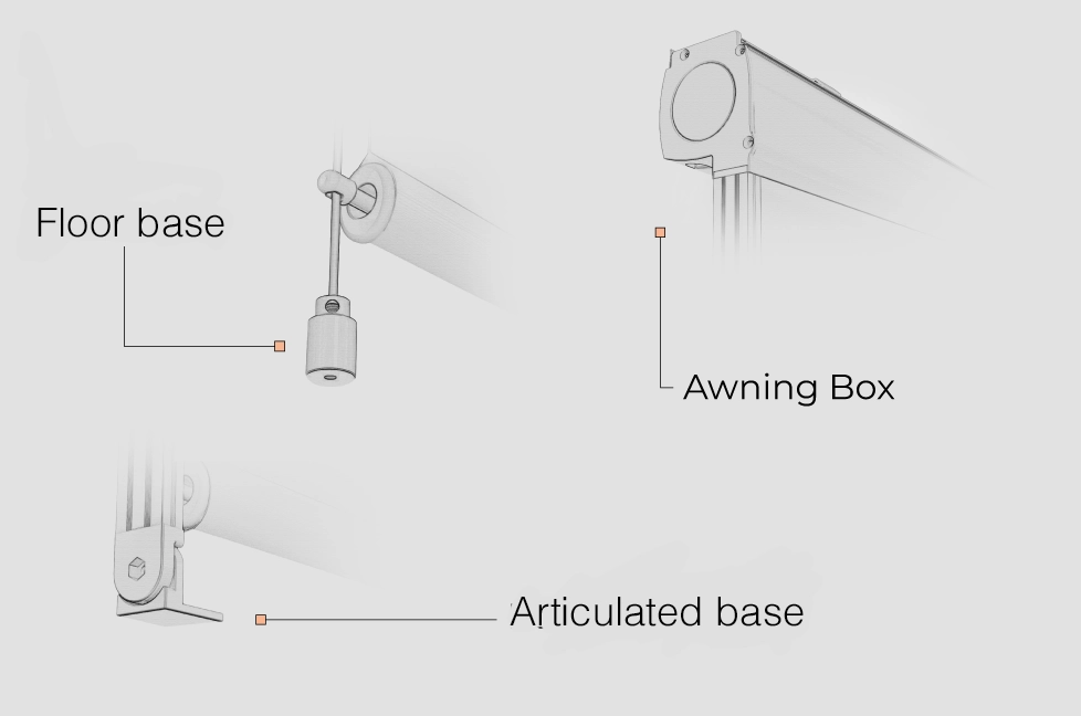 The Awning Box profile is inspectable, ensuring ease of maintenance and access to internal components. In addition, an optional cover profile is available to hide the fixing brackets, contributing to a clean and tidy aesthetic.