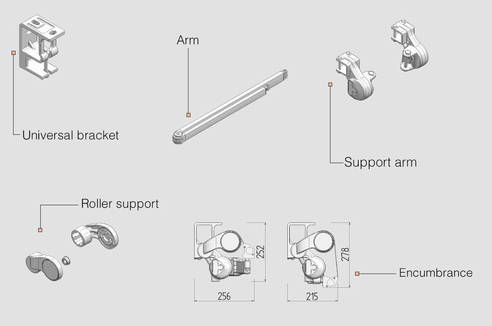 All components are appropriately oversized compared to a classic square bar awning to support the technical requirements related to the large size.