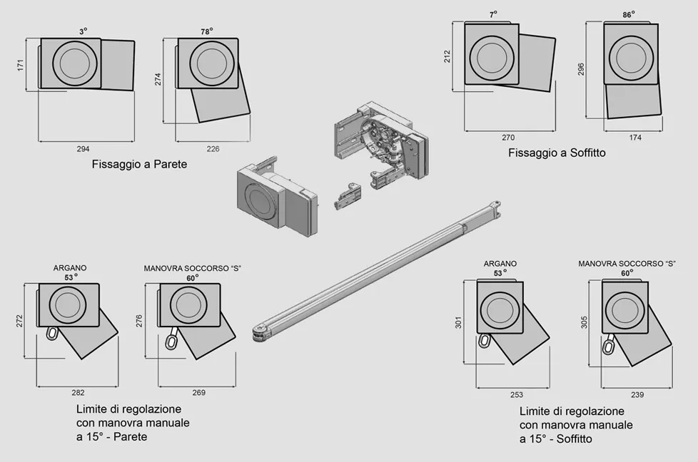 Regolazione inclinazione micrometrica, da 0° a 86° per installazione sicura a parete o soffitto.